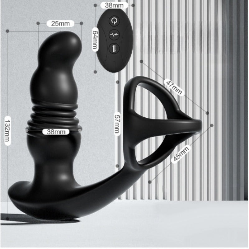 Wireless Thrusting Prostate Massager – Waterproof Vibrating Butt Plug with Cock Ring, Remote Control, 10 Modes, Wearable Anal Vibrator for Men