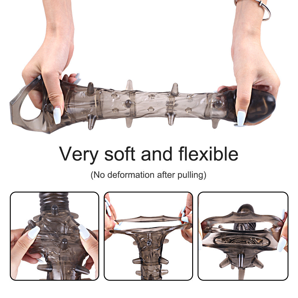 Reusable Penis Sleeve with Vibrator & Cock Ring Extender – Ultra-Soft Penis Enlarger for Men & Couples